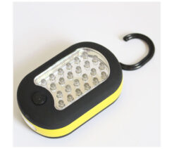 1) 24 super bright white LEDs on the front and 3 super bright white LEDs on the side. On the back is a strong magnet and a hook. The strong magnet can be used on the metal body. The hook can be used for 360 degree rotation suspension.