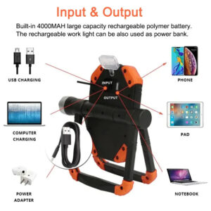 The COB (Puce à bord) light technology offers a bright and uniform illumination, covering a wide area. Whether you’re setting up a campsite in the dark, Travailler sur un projet de bricolage, or performing emergency repairs, the powerful light output will provide clear visibility. The adjustable brightness levels allow you to customize the illumination according to your specific requirements, conserving battery power when full brightness is not necessary.
