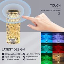 Mil-01006 Rose Quartz Light Decoration Luxury Romantic LED Table Lampes Touch Color Changement